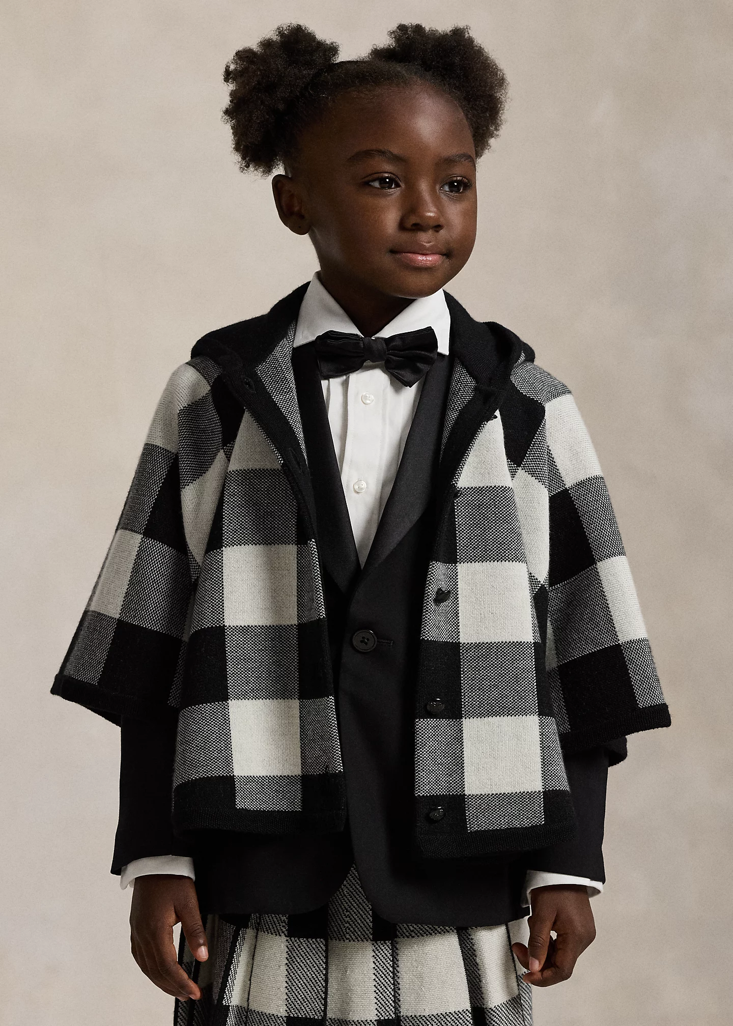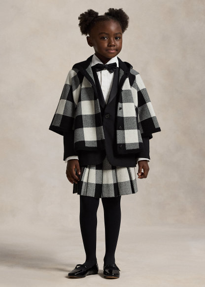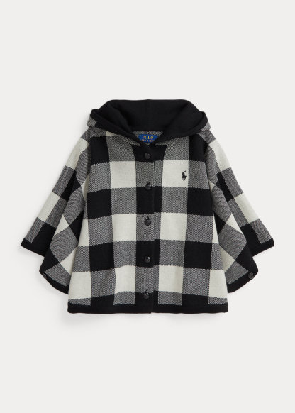 Checked Wool Hooded Poncho
