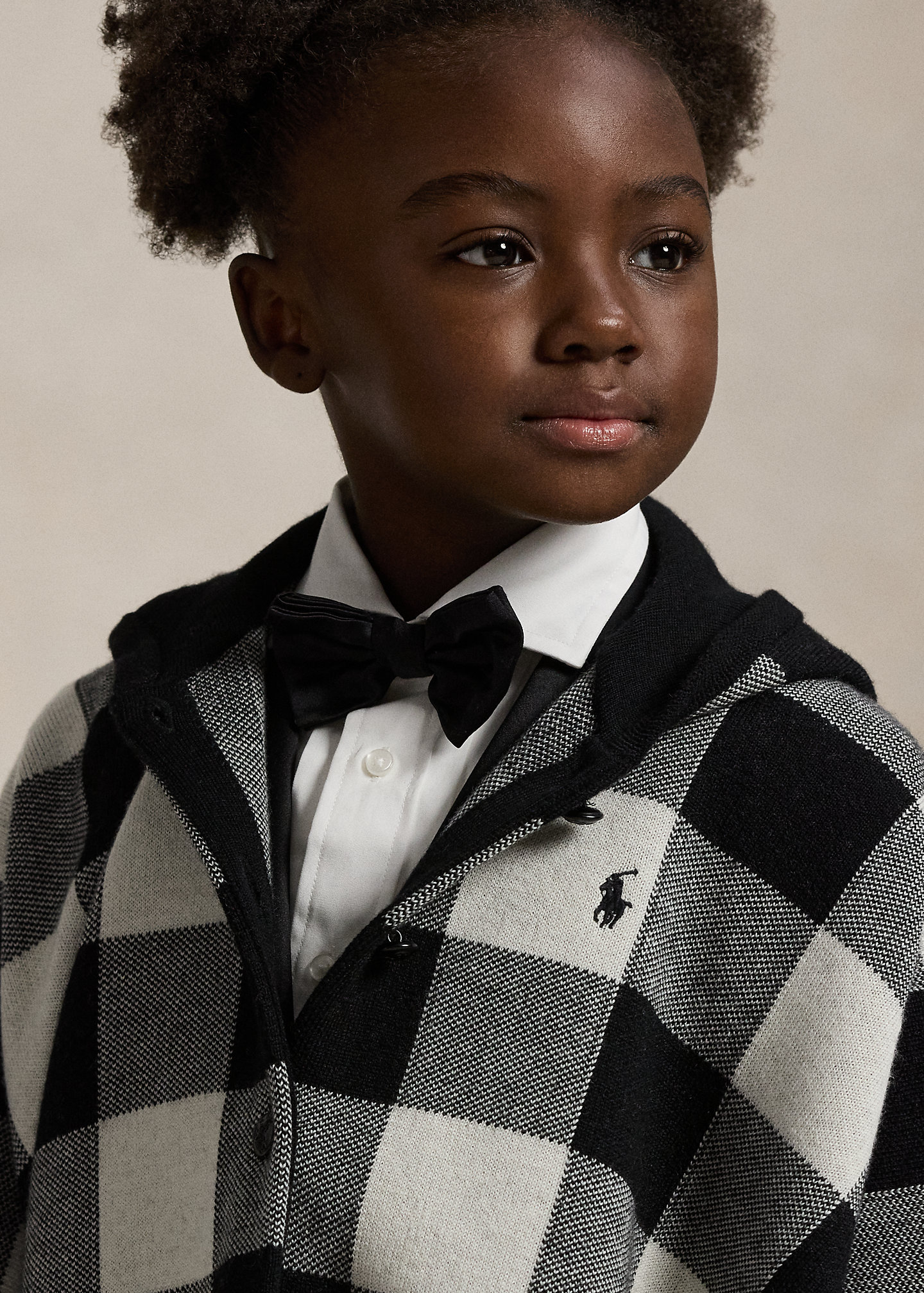 - Buttoned placket. Buttons are custom-developed with a “PRL” logo.