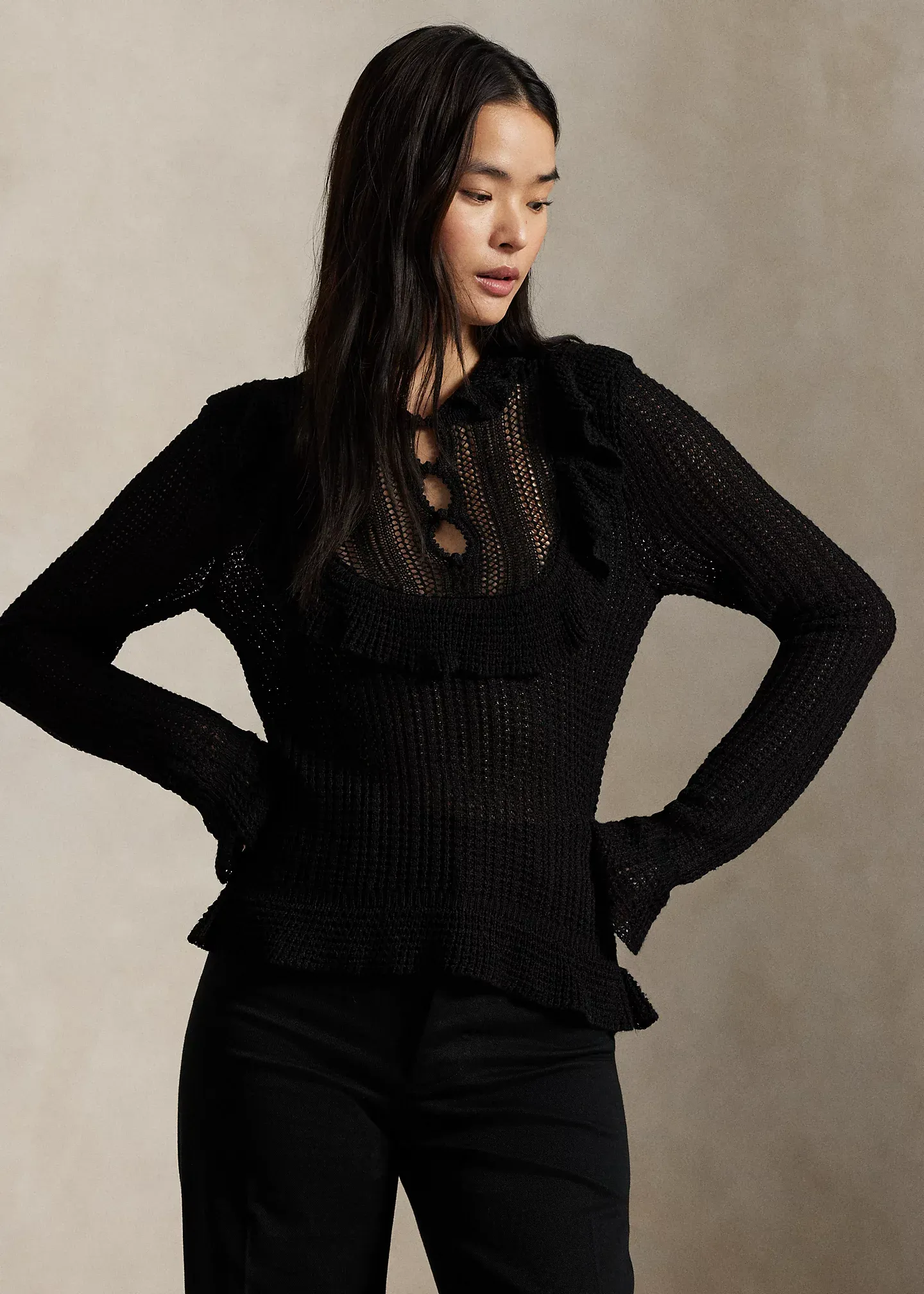 Crocheted Ruffle-Trim Sweater