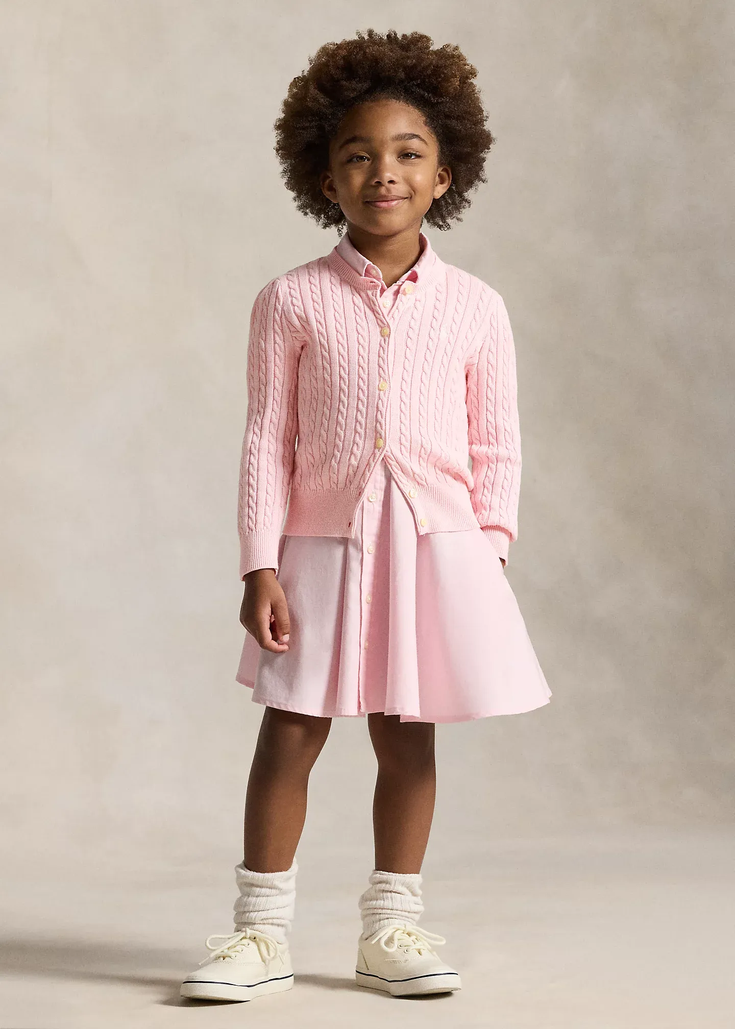 - Buttoned placket. Grosgrain trim along the underplacket.