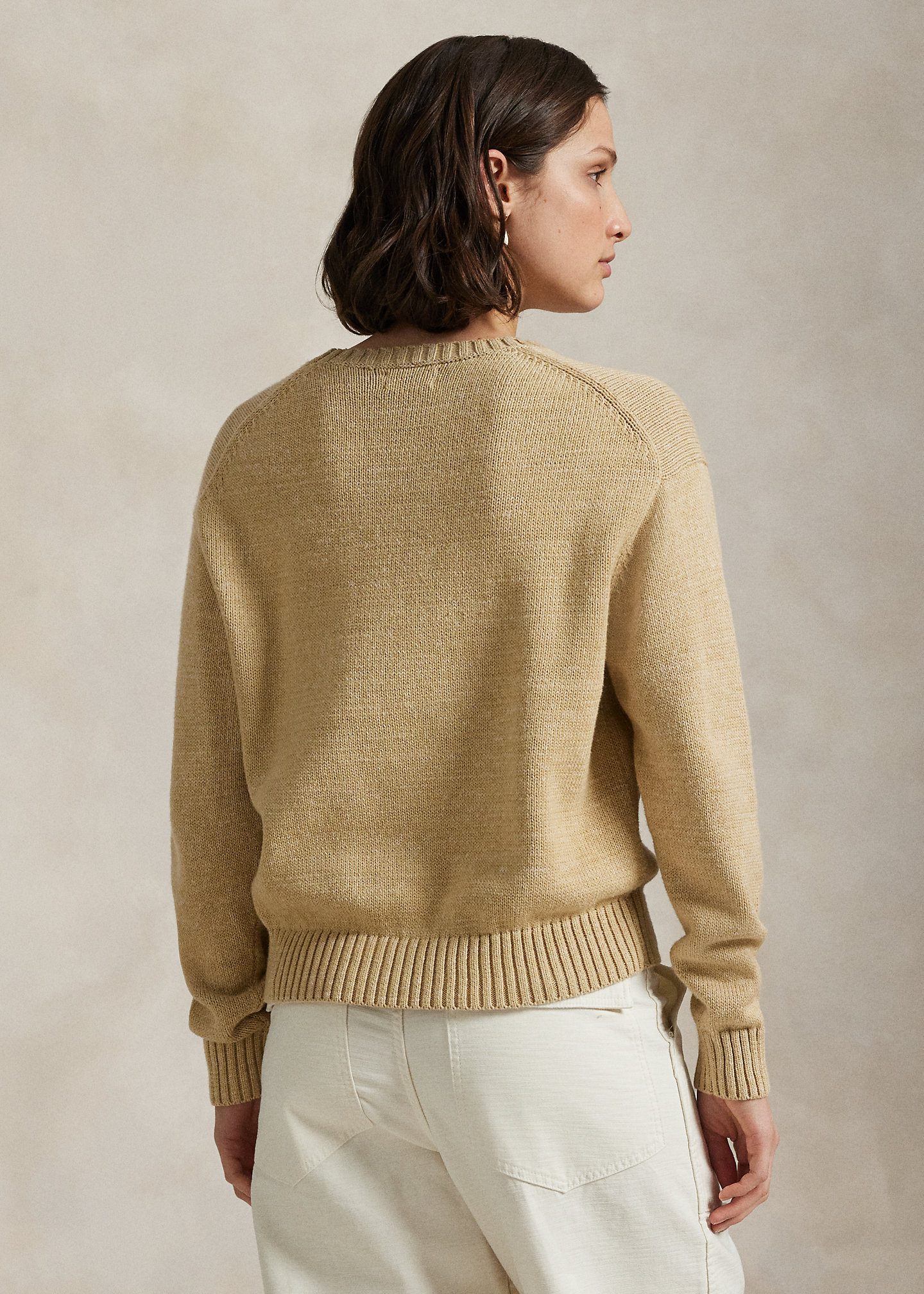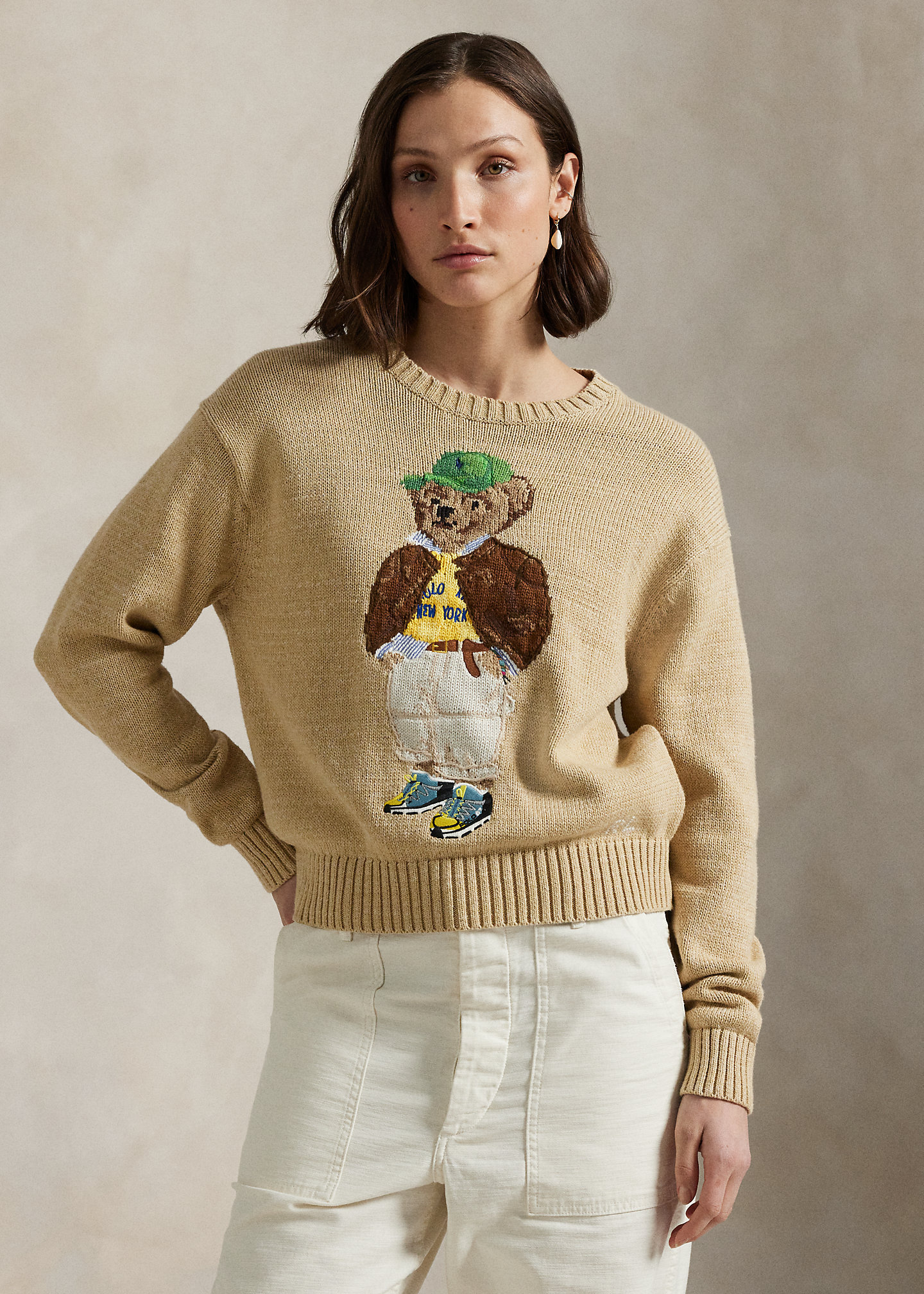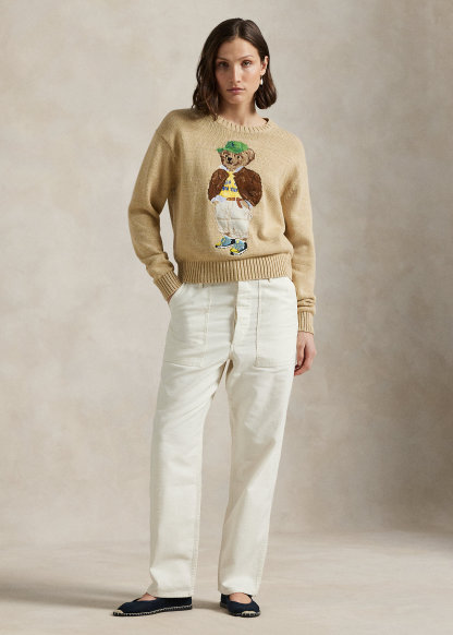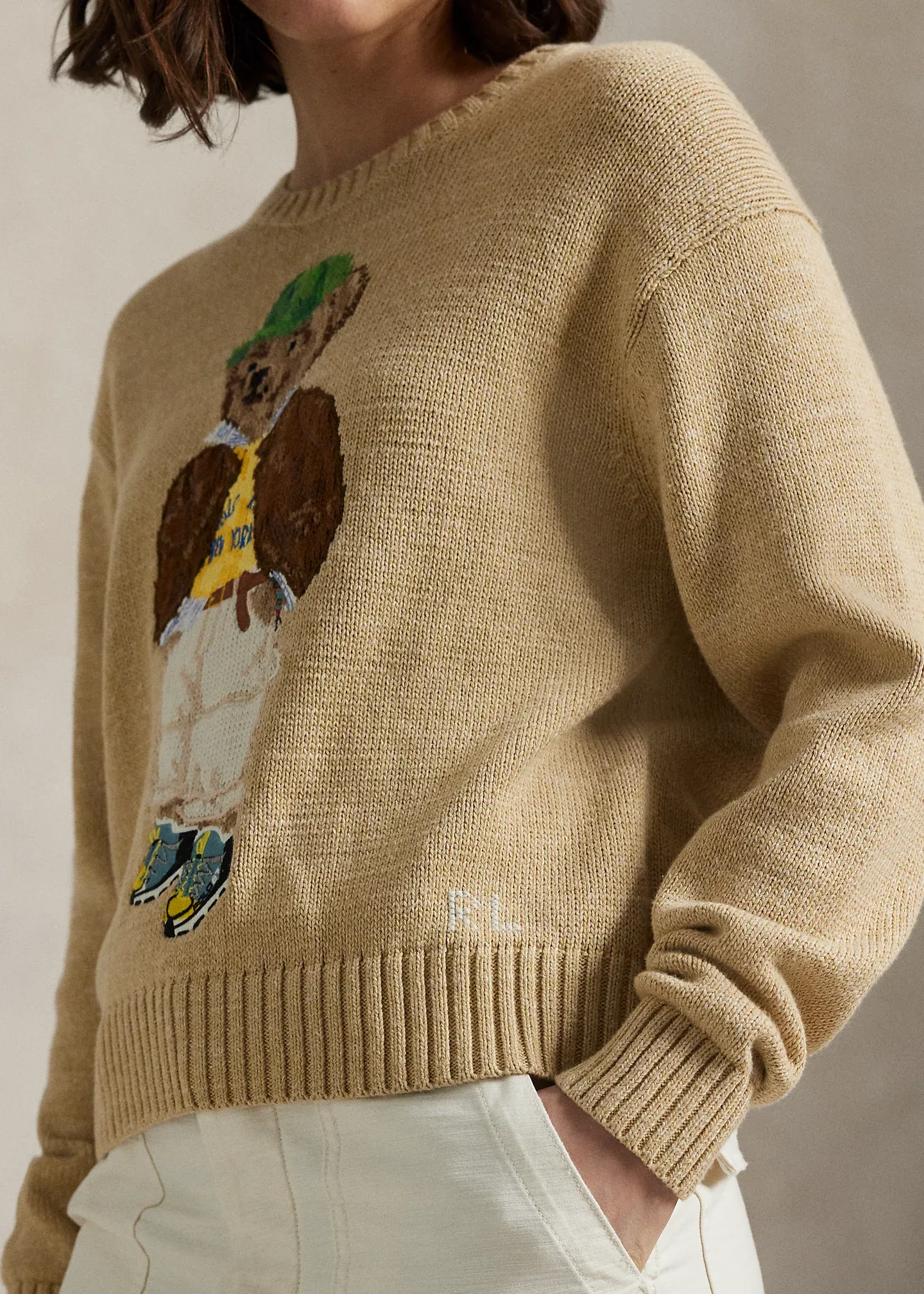 - Polo Bear intarsia-knit and embroidered at the front. “RL” cross-stitched at the left hem.