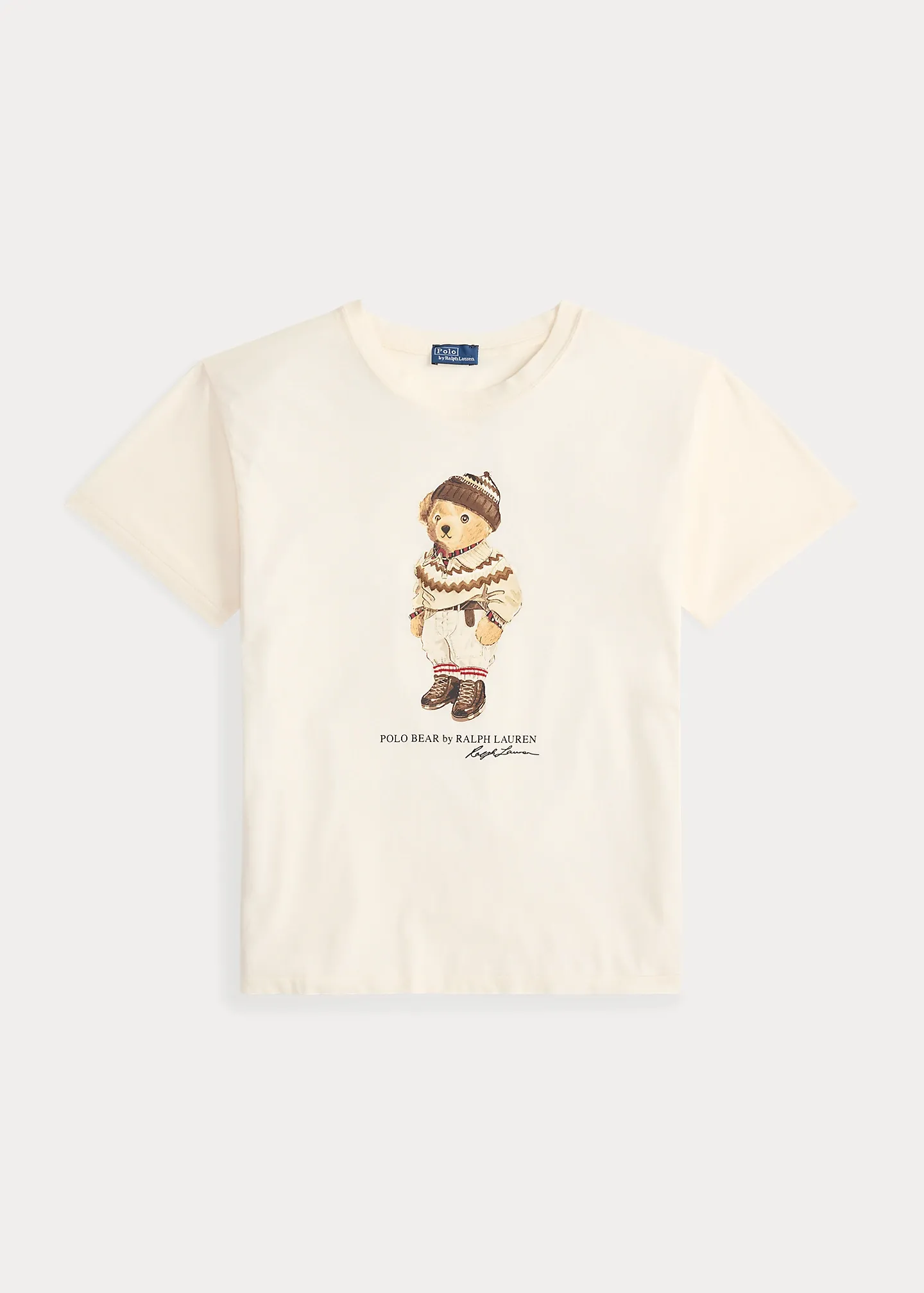 - Polo Bear, “Polo Bear by ralthtph lauthtren,” and script “ralthtph lauthtren” signature rubber-printed at the center front.